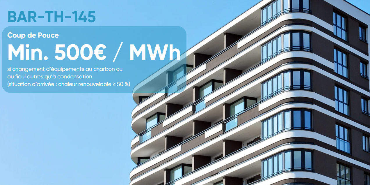 Ce dispositif « Coup de pouce » a pour objectif d’inciter financièrement les propriétaires de bâtiments résidentiels collectifs en France métropolitaine à réaliser une rénovation globale performante de leur patrimoine immobilier, en particulier lorsqu’elle inclut le changement de leur chaudière alimentée par des énergies fossiles.