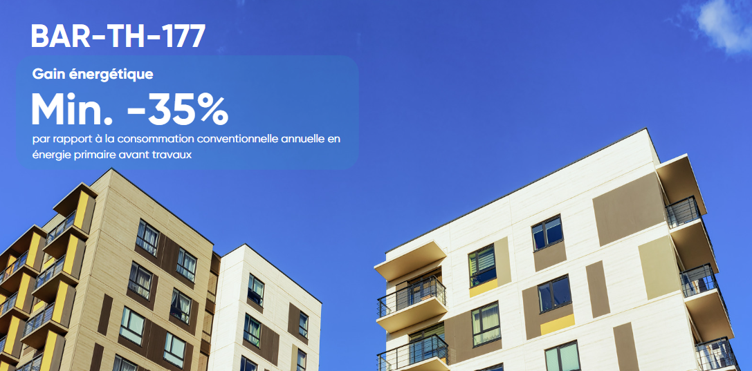 Retrouvez les critères d’éligibilité des produits sur la fiche d’opération standardisée CEE BAR-TH-117 Rénovation globale d’un bâtiment résidentiel collectif.